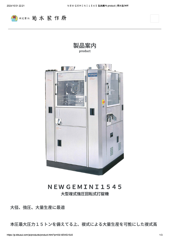 大型複式強圧回転式打錠機 NEW GEMINI 1545DS