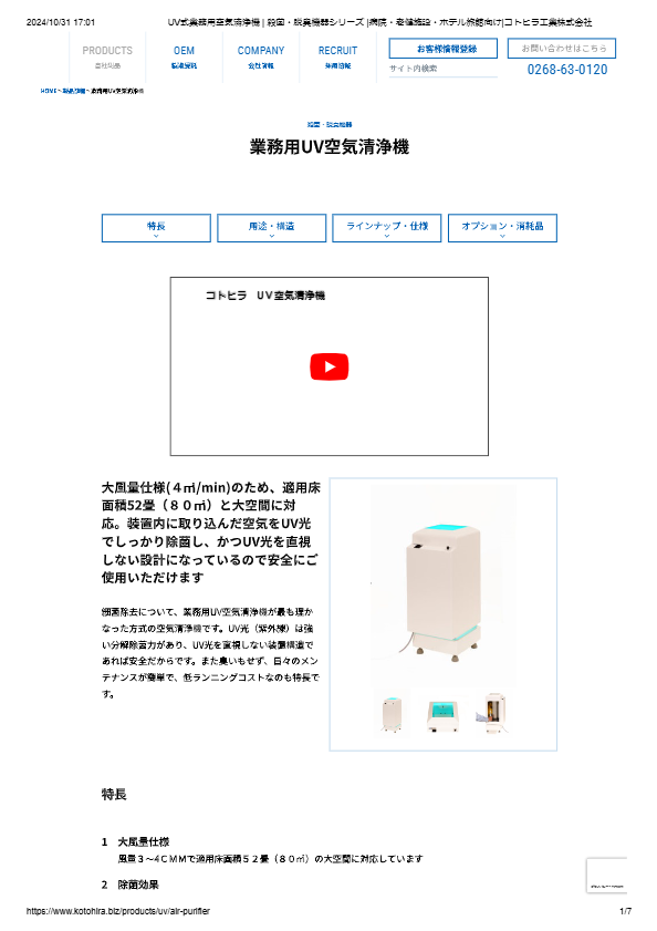 カタログ(業務用UV空気清浄機)