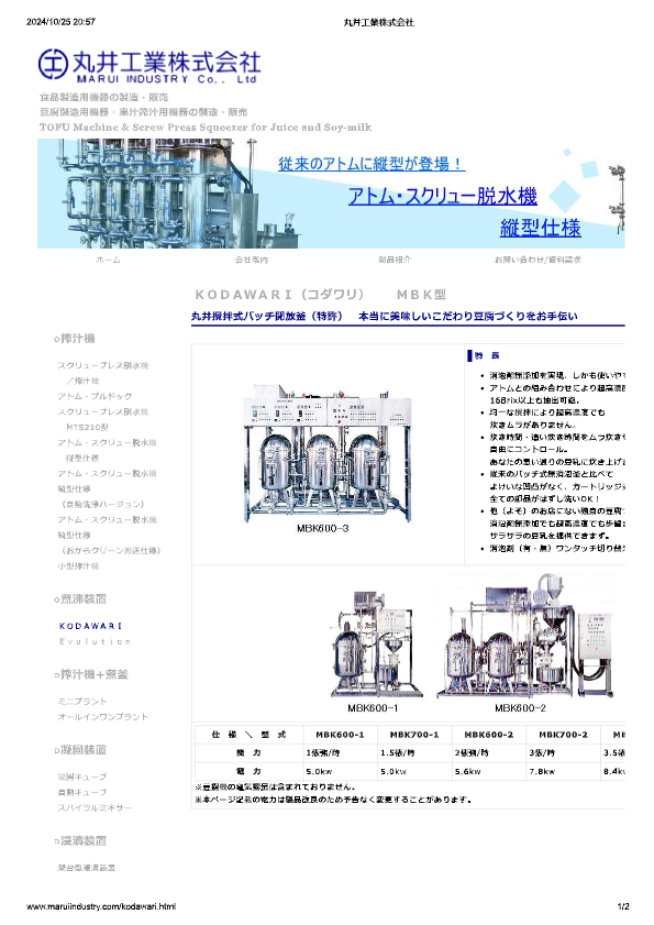 カタログ(多連式スクリュープレス/搾汁機 MTS-SP12)