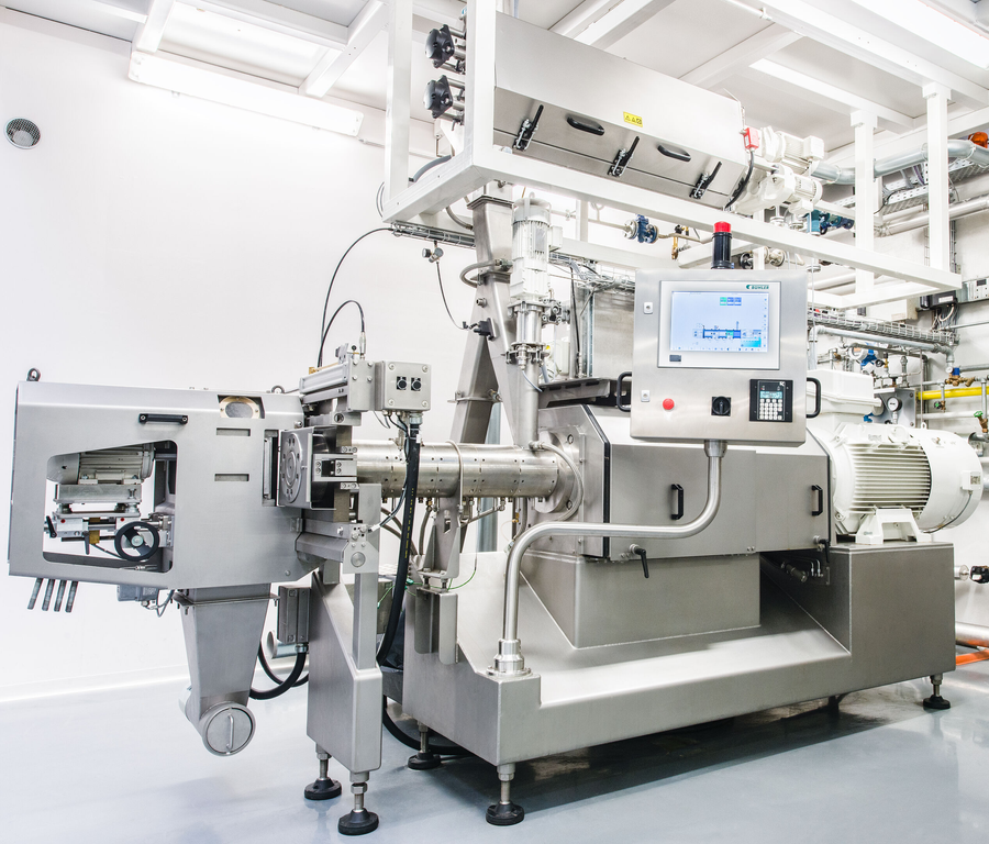 エクストルーダーとは、粉体状またはペースト状の原料を混錬し、高温の状態で加熱、装置内のスクリューで加圧し、押し出すことによって成型、加工する多機能の食品加工機器のことをいいます。