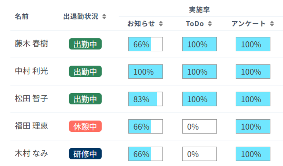 管理者が、管理画面で各スタッフの閲覧記録(既読/未読)を確認できること。