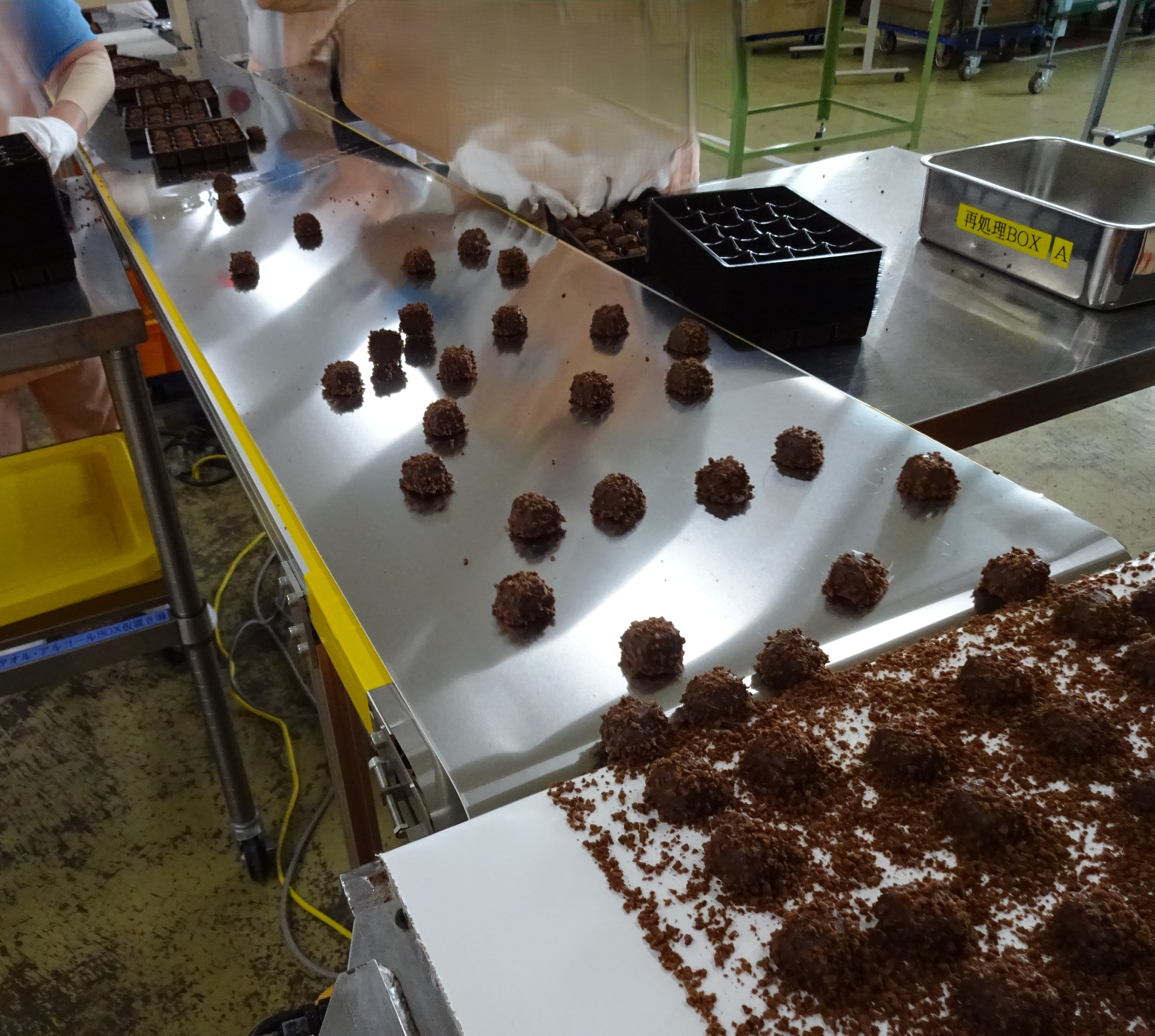 工程:チョコレート菓子の箱詰めライン