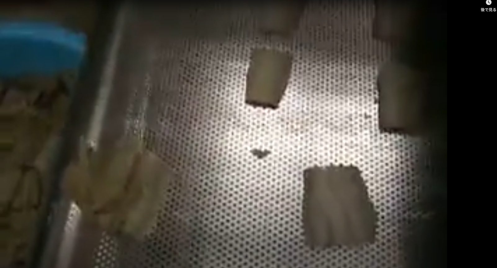 惣菜がベルト上に落ち、油汚れが発生
