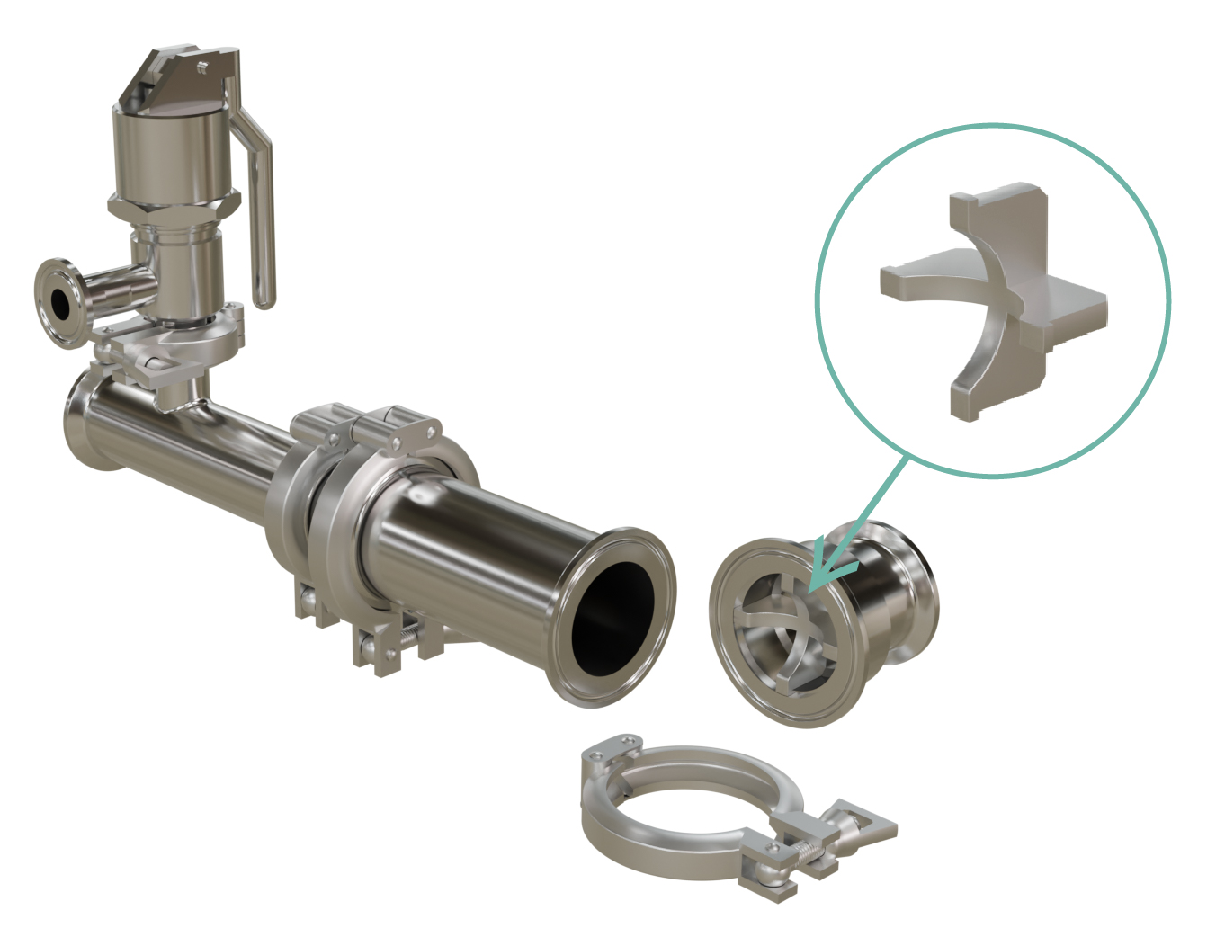 ・粘性の高い食品原料の押出しを容易にし、配管内のコンタミネーションを防ぎます。