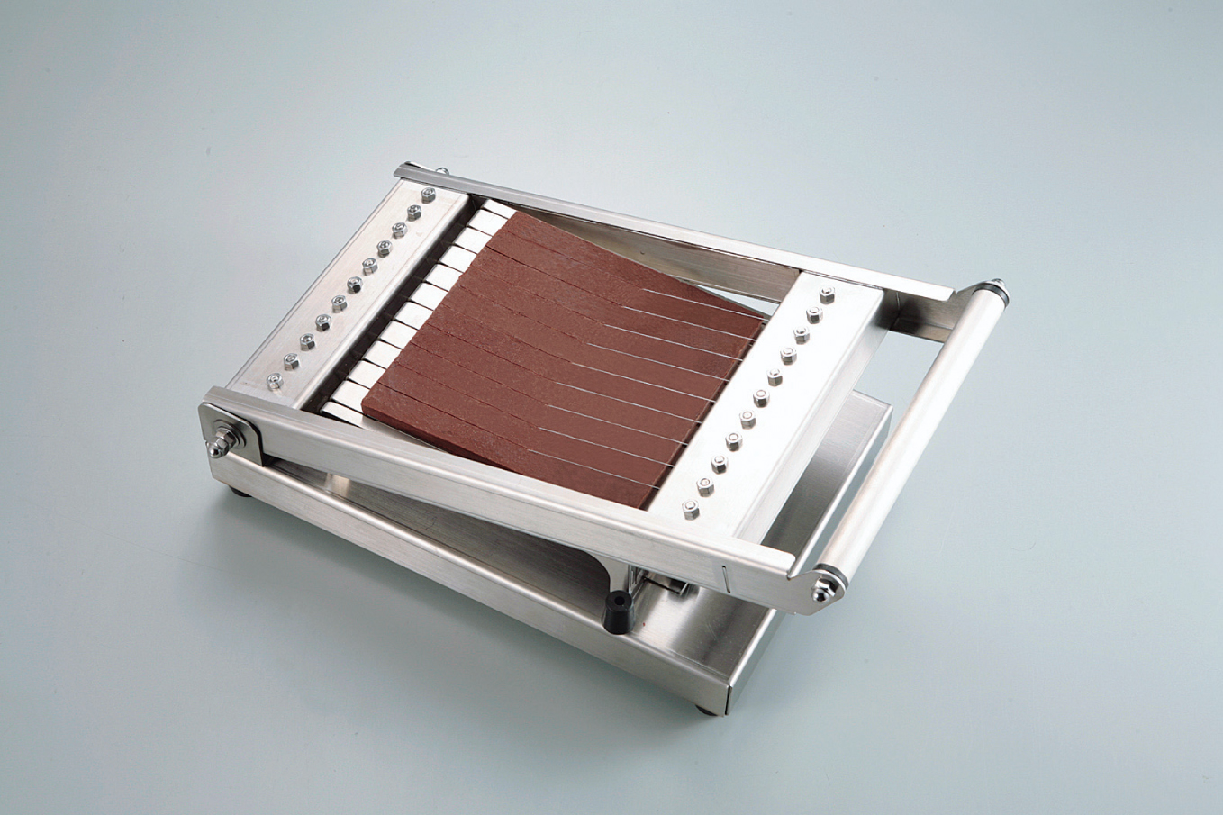 一定の幅にセットされたステンレスワイヤーできれいにカット出来ます。