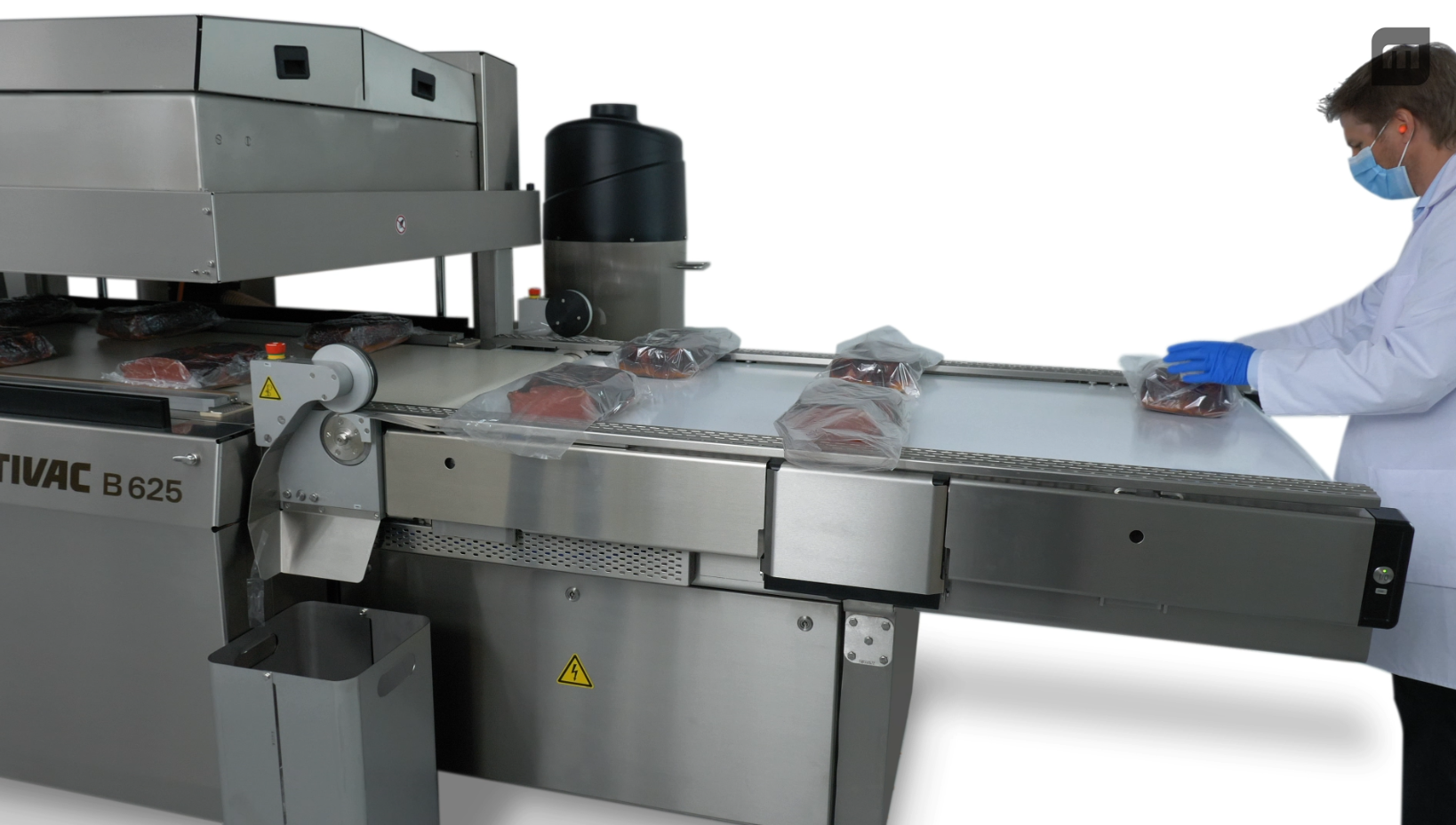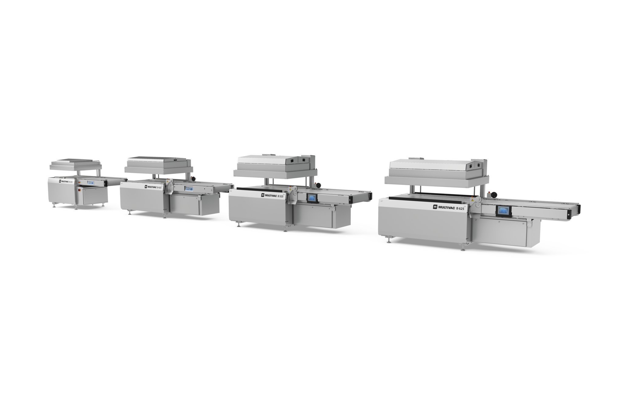 ムルチバック ベルトチャンバー包装機 Bシリーズは、三方袋に生肉や食肉加工品、乳製品、水産製品、各種惣菜等を詰めて、真空パックまたはガスパックする連続式の包装機です。包装品の酸化防止や鮮度保持に優れ、長期保存や輸送に最適な包装品質を保ちます。