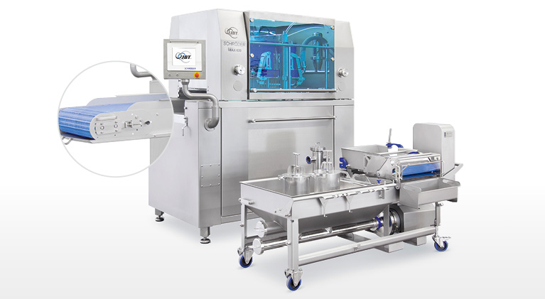 生肉、生魚、ハム用の豚肉や、唐揚げ用の鶏肉などの味付けを促進するための製造機械で、古くからの塩漬(漬け込み)工程を機械化することにより、短時間でより安定した品質の塩漬を行う目的を持ちます。