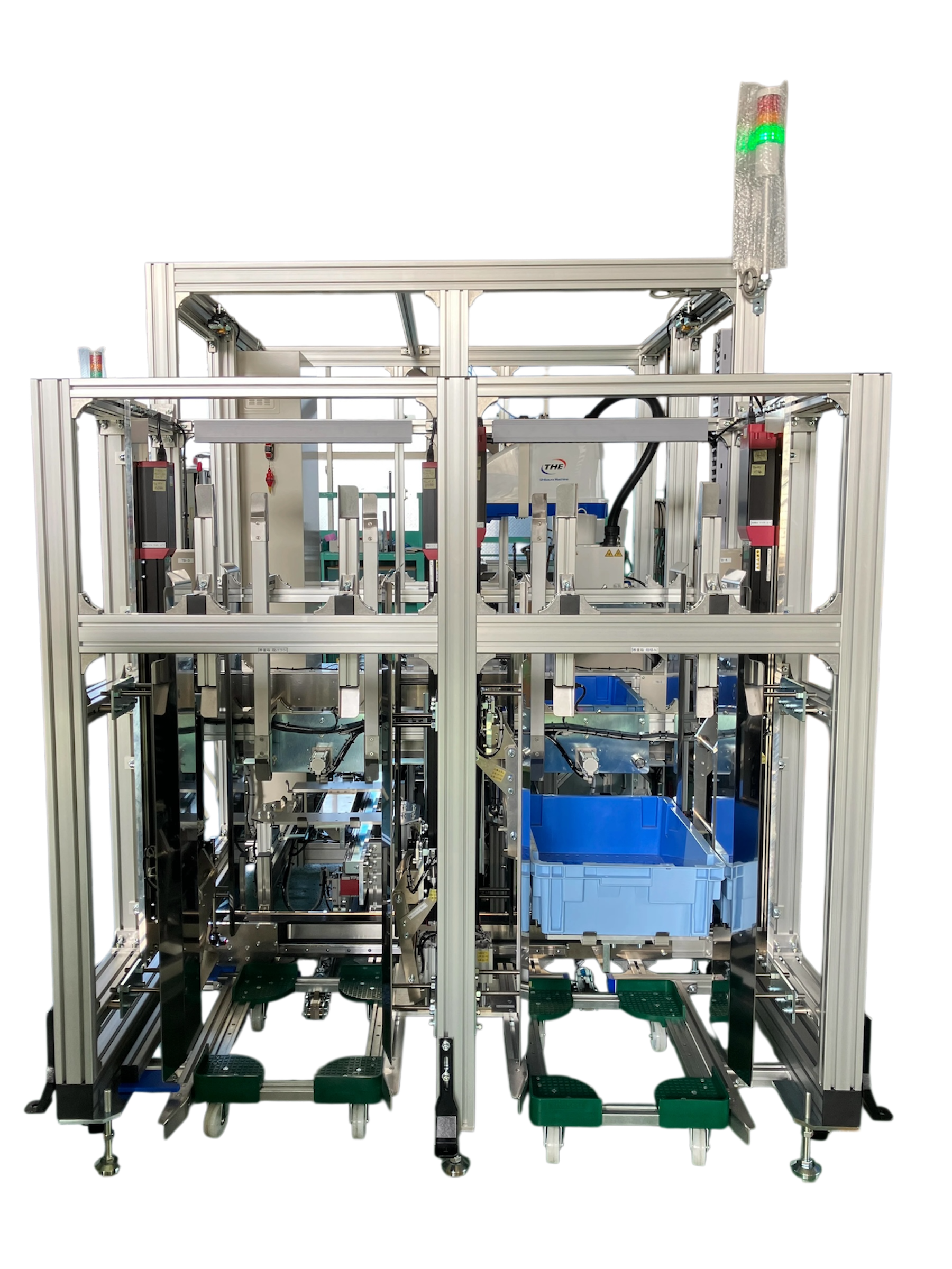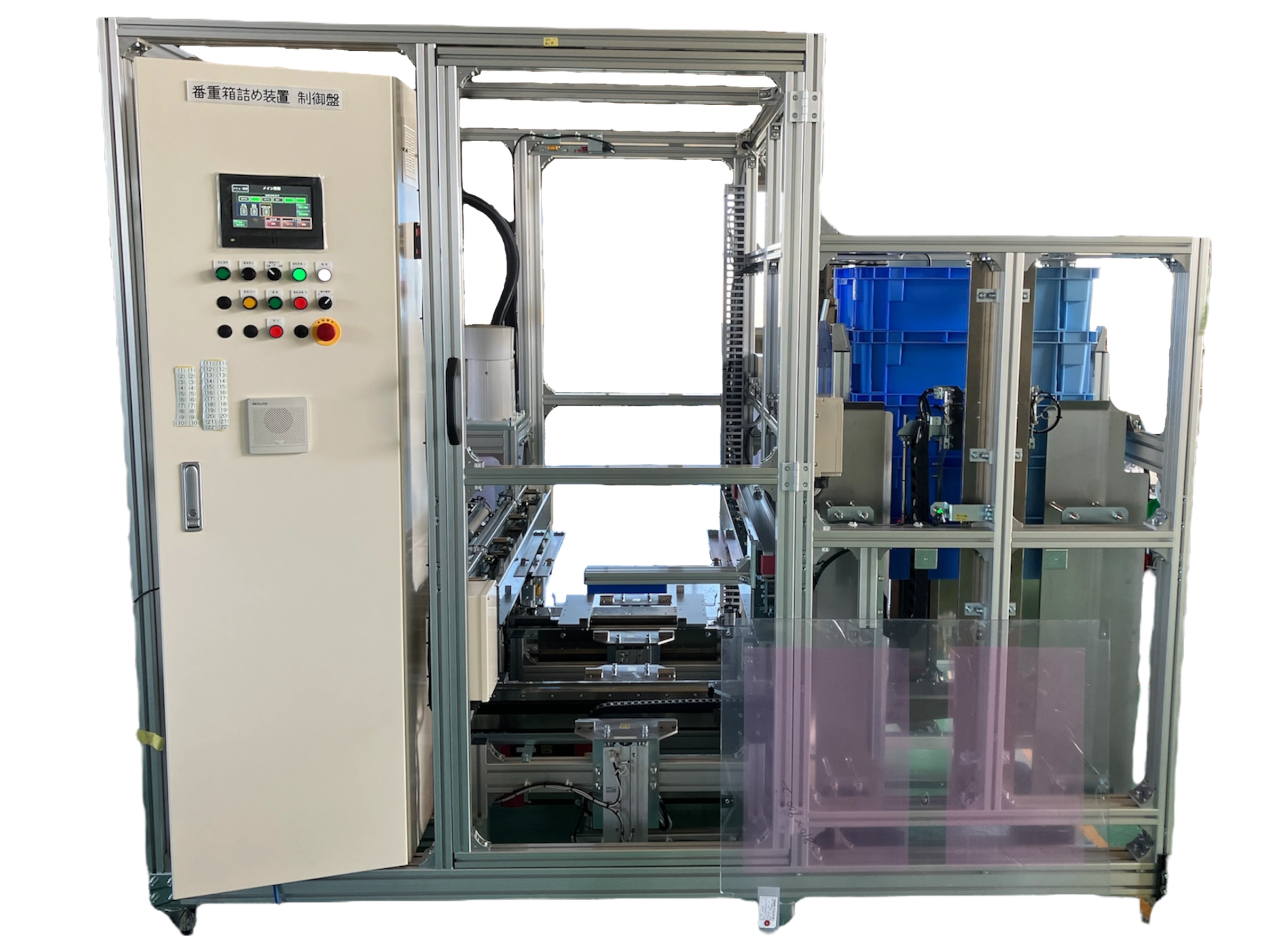 『製品番重移載システム』は、製品を番重に詰める作業や、番重を交換する作業を自動化します。