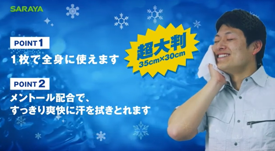 本製品は、作業中は首にかけて使用でき、休憩中には汗を拭きながらひんやりとリフレッシュ。
