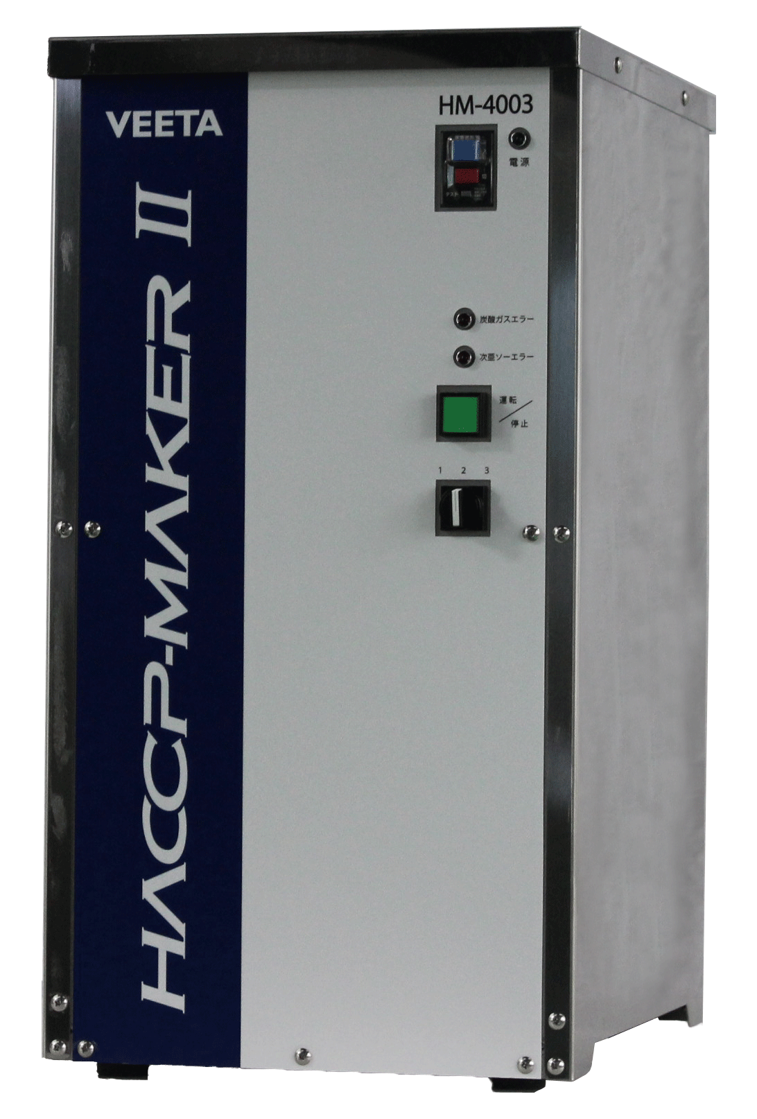 「ただの希釈じゃない。殺菌力を『覚醒』させる世界初の炭酸ガス混合法」 多くの現場で使われる「次亜塩素酸ナトリウム(ジアソー)」は、実はそのパワーの約90%が眠ったまま(イオン状態)なのをご存知ですか? 弊社の「ハセップメイカー」は、ジアソーに炭酸ガスを混合することで、殺菌主成分である「次亜塩素酸分子(HOCl)」を100%近い比率まで引き出した次世代の殺菌水(炭酸次亜水)を生成します。 ・圧倒的な破壊力:分子レベルの比較で、従来のジアソー希釈液の約80倍の殺菌速度を誇ります。 ・守備範囲の広さ:アルコールが効かないノロウイルスや、強靭な芽胞菌・リステリアも短時間で不活化。 ・人体の免疫システムに近い殺菌方法なので、手荒れの心配、アレルギーの心配も無く安心。 ・炭酸ガス混合式は、塩素ガス発生リスクも無いので作業者の健康リスクも無く安全性も高い。 ・スペック: ◦ 生成量:毎時300Lから最大4tまで、現場に合わせた豊富なラインナップ。 ◦ 濃度切替:50/100/200ppmなど、用途に合わせワンタッチで選択可能。 ◦ 超小型設計:設置場所を選ばないコンパクトボディ。 ※炭酸ガス混合法として ◦生成コストも安価:1tあたり約280円