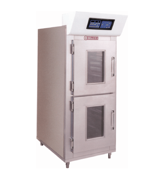Multi-36RSは、発酵に加えて熟成工程まで対応可能な高機能ドゥコンディショナーです。温度・湿度・時間を精密に制御し、安定した製品品質を実現します。操作は高感度タッチ液晶パネルで直感的に行え、設定ミスの防止にも貢献します。さらに、自動洗浄機能や防蝕仕様の冷却コイルを採用することで、衛生性と耐久性にも優れた製品です。