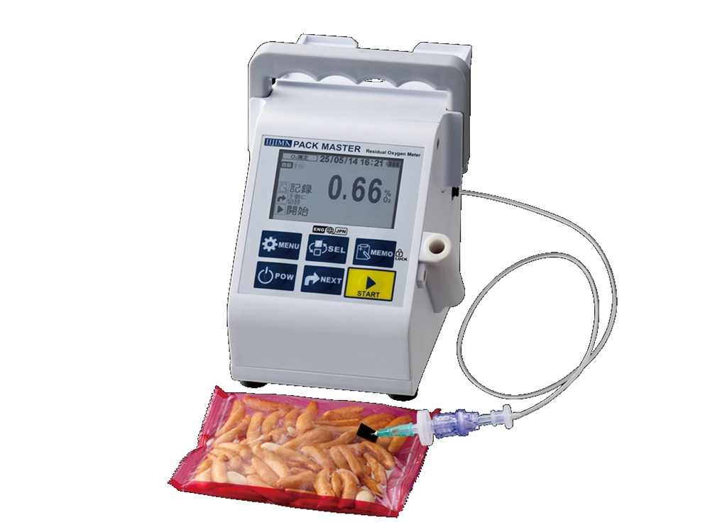 食品や飲料などのパッケージ内の酸素濃度を測定できる機種をラインナップしています。 パックマスターは、オプションを使用することで飲料の溶存酸素(DO)を測定できます。 MAP包装や脱酸素包装により、鮮度保持や賞味期限の延長などに貢献します。 <製品の特長> 特長① ワンタッチ操作のスピーディ測定 サンプルに注射針を刺し、STARTキーを押すと自動測定を開始します。 自動安定判断機能により、最短6秒で安定値を表示します。 特長② 1年保証の酸素センサー 日本国内での使用に限り、最長1年間、未開封の状態で保管が可能 特長③ 便利な機能を搭載 ・詰まりチェック(詰まり検知機能) ・ガイダンス表示機能(トラブルシューティングを日本語で分かりやすく表示、QRコードの案内も表示) ・メモリー機能(300件) ・日本語/英語切替機能 特長④ 減圧サンプルでも自動吸引が可能 吸引力の改良により、 従来は手動シリンジ操作でしか吸引できなかった減圧サンプルでも、 自動吸引が可能になりました。 手動操作による測定者ごとのばらつきがなく、効率もアップ! <測定範囲> 【酸素濃度】0.00~9.99%O2、10.0~85.0%O2 オートレンジ切替 【ガス置換率】0.0~100.0% 【溶存酸素】0.00~0.00~9.99mg/L、10.0~20.0mg/L オートレンジ切替 【飽和率】0.0~200.0%【水温】0.0 ~40.0℃