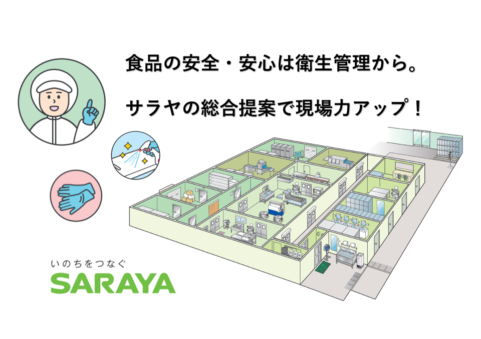 サラヤが支える 食品工場の衛生管理と感染対策トータルソリューション ●個人衛生 - 個人防護服 - 健康管理 - 手洗い ●衛生管理 - 施設設備の洗浄・除菌 - 野菜の洗浄・殺菌 - 発泡洗浄と電解水除菌 - 調理器具・機器部品の自動洗浄 ●環境衛生 - 外部接触時の衛生対策 - トイレ環境の清浄 ●衛生管理IoT記録システム ●衛生の教育動画配信サービス 詳細については添付のチラシからご覧いただけます。PDFダウンロードリンクをクリックしてください。