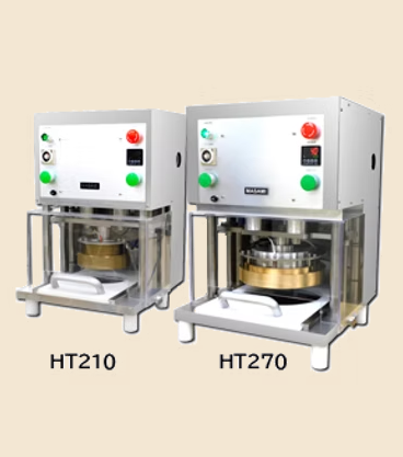 大径タルトもお手の物。引出し式タルト成形機 プレス型はご要望に合わせた専用設計。バラつき無く安定した生産が可能です。誰にでもできる簡単な操作での大径サイズタルト成形を可能にしました。 【用途】 丸形タルト、菊形タルト、舟形タルト(特注) 最大径 (HT-210)Φ210mm、(HT-270)Φ270mm 大きさ/形状は、型の交換で変更できます。 MAX300個/時 ※条件により異なります。