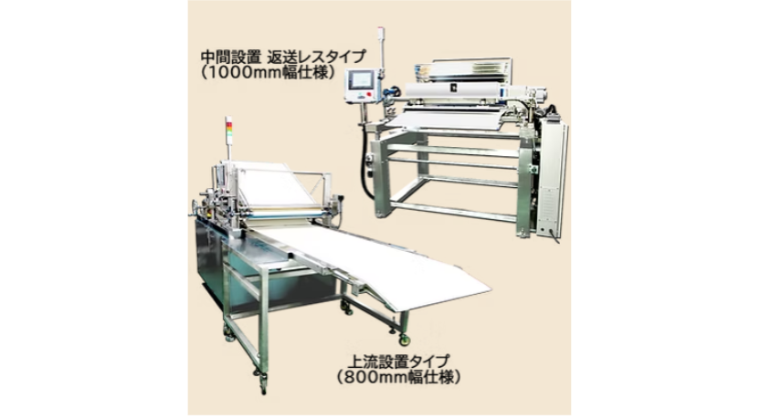 既設ライン上に設置可能なデポジッター バンドオーブン上への設置に特化した、ライン型デポジッターです。既設ラインを寸断せず設置が可能です。600mm、800mm、1,000mmのバンド幅に対応可能です。