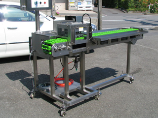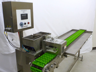 鉄砲串等の多種類の串を使えるようにした大量生産モデル。 長さ180㎜までの串に対応。らくらく洗浄のSタイプも有ります。 〈最大生産量3,000本/時間〉
