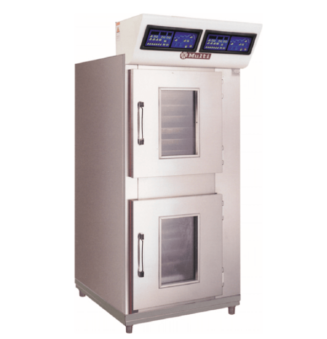Multi-36RSは、発酵に加えて熟成工程まで対応可能な高機能ドゥコンディショナーです。温度・湿度・時間を精密に制御し、安定した製品品質を実現します。操作は高感度タッチ液晶パネルで直感的に行え、設定ミスの防止にも貢献します。さらに、自動洗浄機能や防蝕仕様の冷却コイルを採用することで、衛生性と耐久性にも優れた製品です。