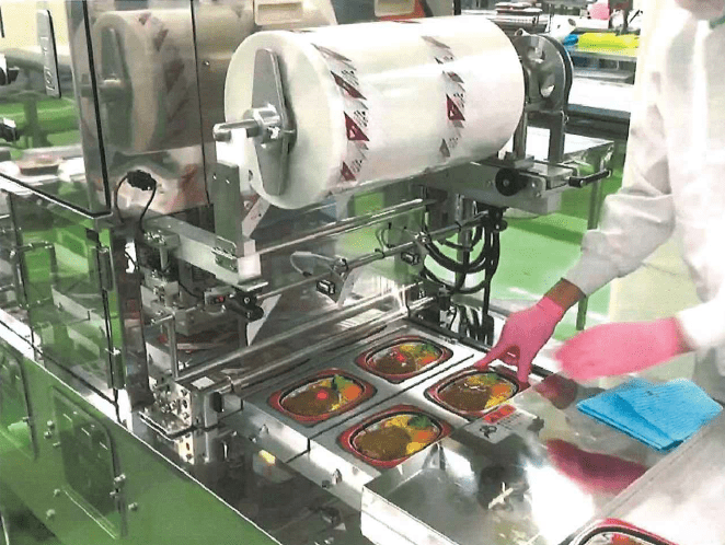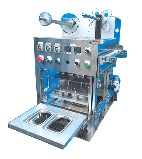 ・大判容器(弁当・惣菜)に対応し、シール・トリミングまで自動化 ・エアー加圧により均一な密封を実現し、不良・液漏れを低減 ・卓上設置で省スペースながら中量産(約300〜500パック/時)に対応