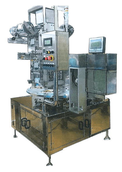 6ステーション 2回シール 自動排出 フィルム柄合せ 広幅面積サーマルプリンタ 電源 AC200V 空気源 必要です 能力 700~900パック/時 <付属装置> 2回シール 自動排出 フィルム柄合せ 自動排出 広幅面積サーマルプリンタ
