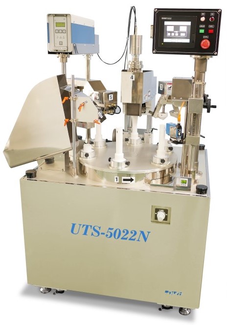 対象チューブ材質:ポリエチレン、アルミラミネート 対象チューブ径:maxφ50mm 対象チューブ長さ:70~max220mm 生産能力:max7.5個/分(チューブ径、材質、熟練度等により変動)