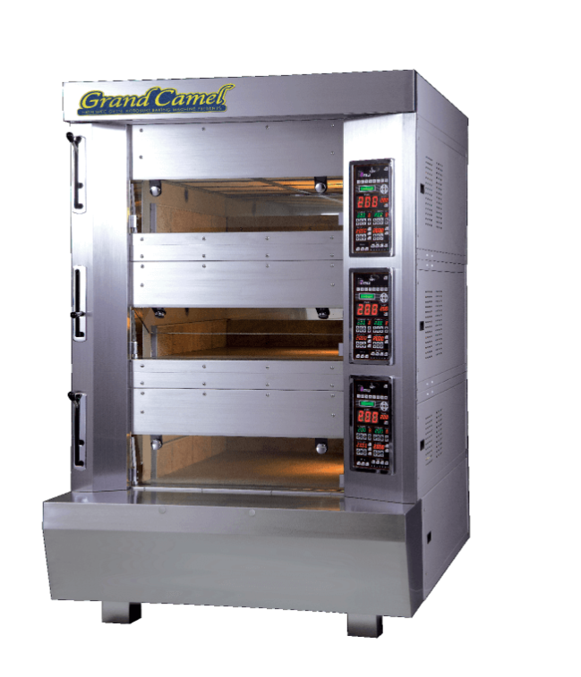 Grand Camel(グランドキャメル)は、キャメルシリーズの最上位機種として開発された高性能ベーカリーオーブンです。 特にハード系パンの焼成に優れ、安定した焼き色と食感を高い再現性で実現します。 遮熱性の高いガラス仕様の内開き扉を採用することで、安全性と作業性を両立しています。 さらに、「RayCa」と同仕様のコンピュータ制御パネルにより、多機能かつ直感的な操作が可能で、多品種生産にも柔軟に対応します。