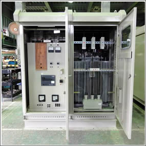 ケース 屋内・屋外型 各種ケースサイズを取り揃えております標準ケースの1連体を増設することにより複数面の列盤の製作が可能です 受電形式 3相3線式 周波数 50または60Hz 高圧回路 主遮断・開閉器 CB型 VCB 7.2kV 600A 12.5kA PF-S型 LBS 7.2kV 200A PF付 保護装置 CB型 OCR ※各種継電器取付可能 PF-S型 PF ※各種継電器取付可能 受電設備容量 各種容量を取り揃えております、あらゆる現場のニーズに合わせた容量の組合せと電圧をご用意いたします 変圧器 動力 (3相5kVA~1500kVA) 6600/210V・6600/440V ※各種電圧仕様あり 電灯 (単相5kVA~300kVA) 6600/210-105V 油入・H種乾式・F種モールド変圧器等 各種 特殊仕様盤 高圧分岐盤(VCBまたはLBS内蔵型)、高圧自動力率調整装置盤、高圧常用・非常用切替盤 等各種ご要望に応じて製作致します