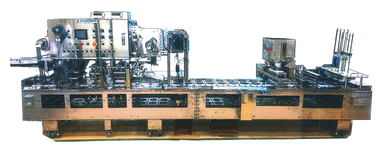 容器の成型と同時にフタ供給・シールを行い、効率的かつ安定した包装を実現する一体型シール機です
